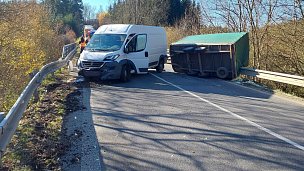 U nehody dodávky s vlekem zasahuje v obci Sebranice profesionální jednotka hasičů z Poličky. Přívěs byl převrácený na boku. Řidič převážel granulovanou močovinu o celkové hmotnosti přibližně 2000 kg. Hasiči zajistili dodávku, uniklé látky posypali sorbentem a asistovali při přeložení nákladu.