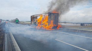 Požár kamionu převážejícího papírové kartony uzavřel na 137. kilometru dálnici D35