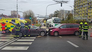 Dopravní nehoda blokuje část křižovatky na Dašické ulici v Pardubicích. Na místě jsou všechny složky IZS.